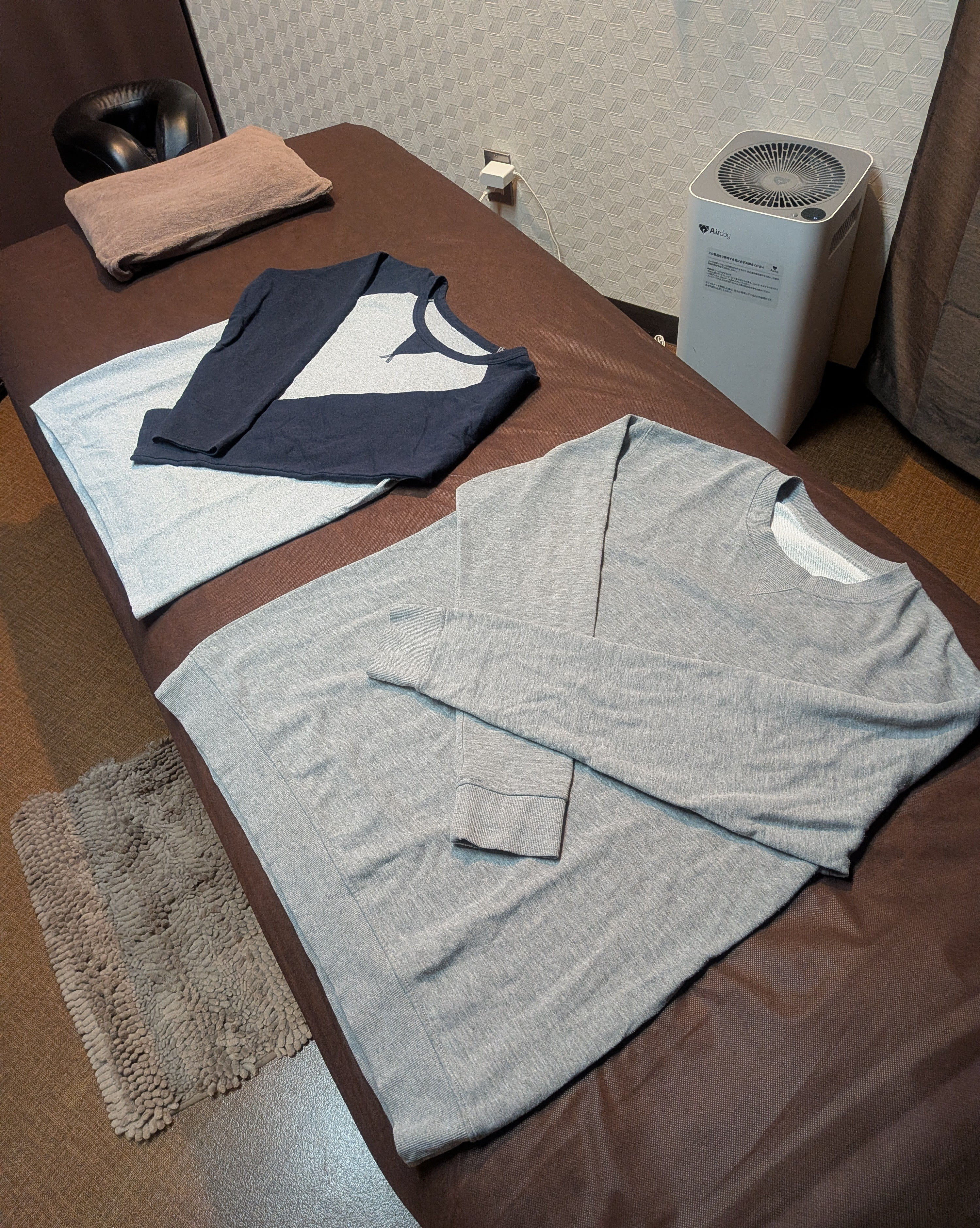 着替えはスウェット上下を大きいサイズ、小さいサイズそれぞれ無料で用意しております。服装を気にせずご来店下さい。